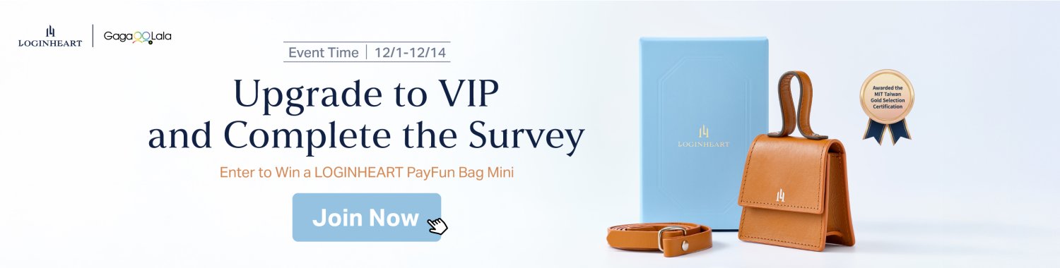 Upgrade to VIP and complete the survey between December 1 and December 14 for a chance to win a LOGINHEART tech mini bag (10 winners). ▲To APP users: Must use the browser to open this page to learn more about the campaign details.